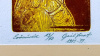 Színezett rézkarc, jelezve jobbra lent, kép m.: 14 x 11 cm. Kicsit sérült keretben m: 30 x 21.5 cm. Festő, grafikus, rendszeres díjazott kortárs művész, sőt Munkái helyet kaptak a Magyar Nemzeti Galériában és számos magyarországi múzeumban.