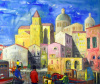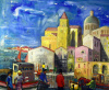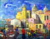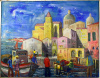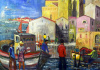 XX. sz. erurópai festő: MOZGALMAS MEDITERRÁN VÁROSI KIKÖTŐ
